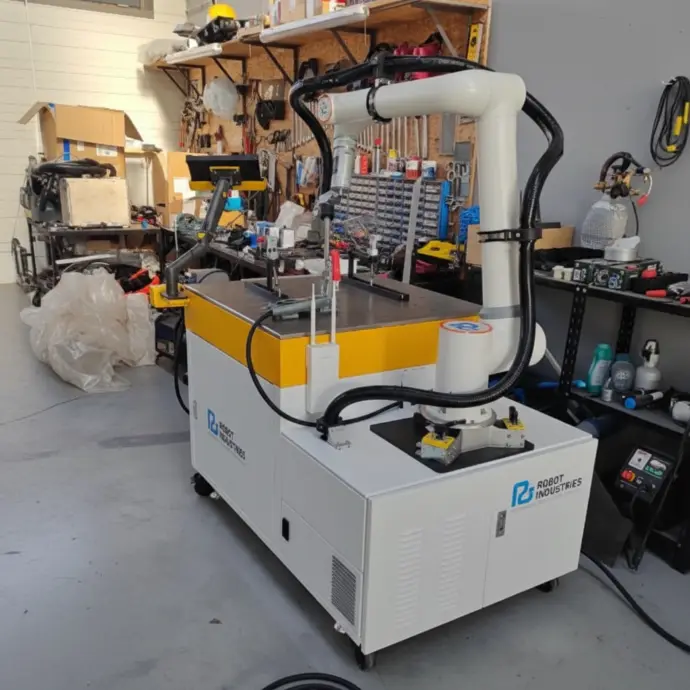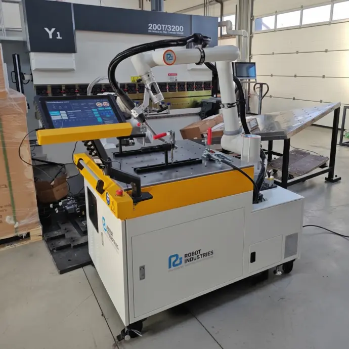 To meet the client’s needs, RI proposed the V2 Collaborative Welding Station. For components that fit on a compact welding table, a 1400mm 6-axis robot with a 500A MIG/MAG water-cooled welding power supply was installed, equipped with a dedicated fixture table allowing the client to secure parts directly for precise welding.