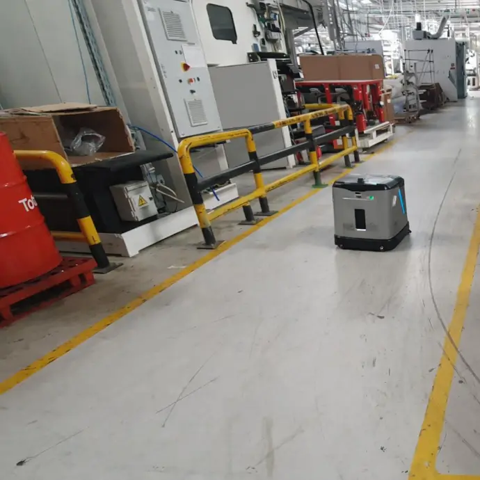 The solution implemented was our CleanX R-3 cleaning robot, a fully autonomous machine capable of sweeping, washing, scrubbing, and vacuuming. With an efficiency of 400–700 m² per hour, the robot was designed to cover the areas of both warehouse and production spaces while remaining compact and maneuverable, ensuring it does not obstruct aisles. Its autonomous operation and integrated monitoring system allow the client to track cleaning activities in real time and generate detailed reports, providing a reliable and highly efficient alternative to traditional cleaning methods.
