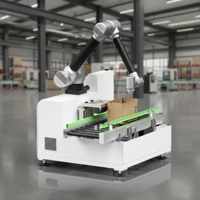 Flexible and compact, it adapts to various products and packaging types while optimizing workspace. With advanced safety features and user-friendly operation, it transforms traditional packing into a faster, smarter, and more reliable process, helping companies stay competitive in today’s industrial landscape.